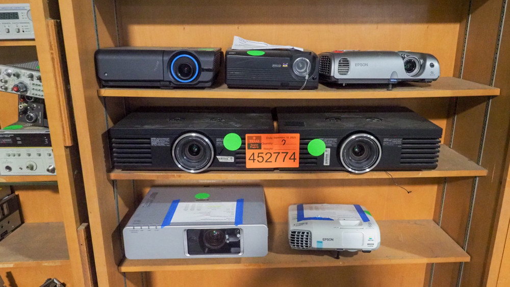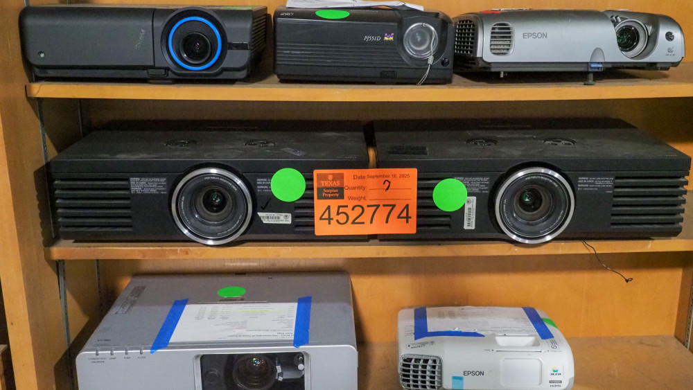 Includes projectors by InFocus, ViewSonic, Epson, and Panasonic. Designed for presentation or classroom use. Condition:Used, Unknown *The University of Texas at Austin makes no claim of physical or mechanical condition, and functionality of items available through SWICO Auctions. All items are sold “As is, where is”. It is the sole responsibility of the bidder to physically inspect items before bidding and assume all risk. Photos and descriptions are for preview only. All sales are final and no refunds will be issued. Please refer to the SWICO “Terms of Service” in which you have agreed to.