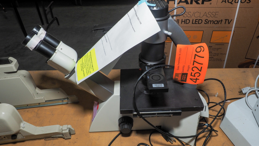 Leica inverted microscope with 2 eyepieces. Compact lab microscope for basic research or teaching. Condition:Unknown *The University of Texas at Austin makes no claim of physical or mechanical condition, and functionality of items available through SWICO Auctions. All items are sold “As is, where is”. It is the sole responsibility of the bidder to physically inspect items before bidding and assume all risk. Photos and descriptions are for preview only. All sales are final and no refunds will be issued. Please refer to the SWICO “Terms of Service” in which you have agreed to.