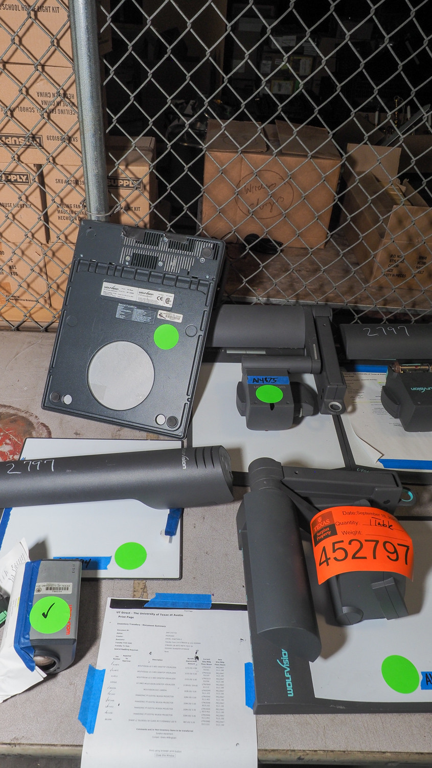 Mixed models including Eye-10, VZ-82, VZ-8, and VZ-8 Light³. Useful for classrooms or training setups. Condition:Unknown *The University of Texas at Austin makes no claim of physical or mechanical condition, and functionality of items available through SWICO Auctions. All items are sold “As is, where is”. It is the sole responsibility of the bidder to physically inspect items before bidding and assume all risk. Photos and descriptions are for preview only. All sales are final and no refunds will be issued. Please refer to the SWICO “Terms of Service” in which you have agreed to.