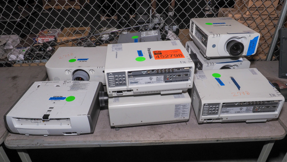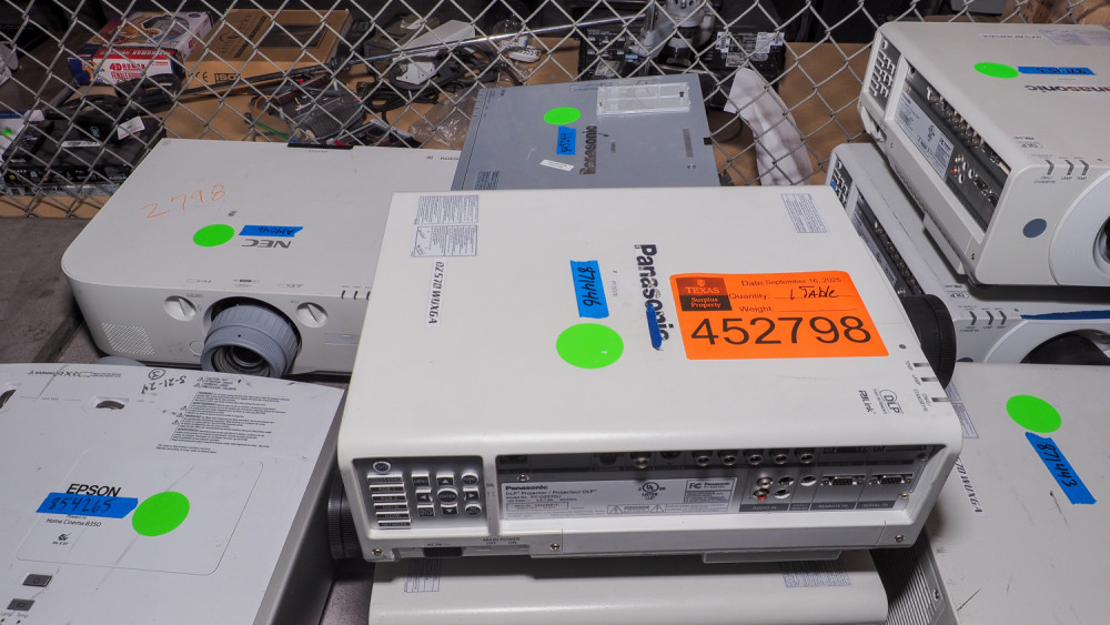 Includes Epson Home Cinema 8350, NEC PA571W, Panasonic PT-DZ7570, PT-F300, PT-DZ570. Professional projection gear. Condition:Unknown *The University of Texas at Austin makes no claim of physical or mechanical condition, and functionality of items available through SWICO Auctions. All items are sold “As is, where is”. It is the sole responsibility of the bidder to physically inspect items before bidding and assume all risk. Photos and descriptions are for preview only. All sales are final and no refunds will be issued. Please refer to the SWICO “Terms of Service” in which you have agreed to.