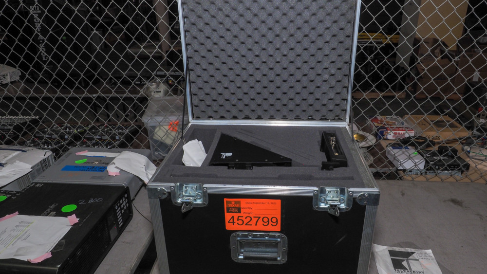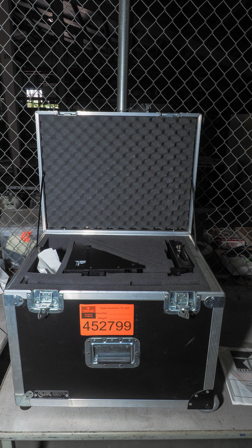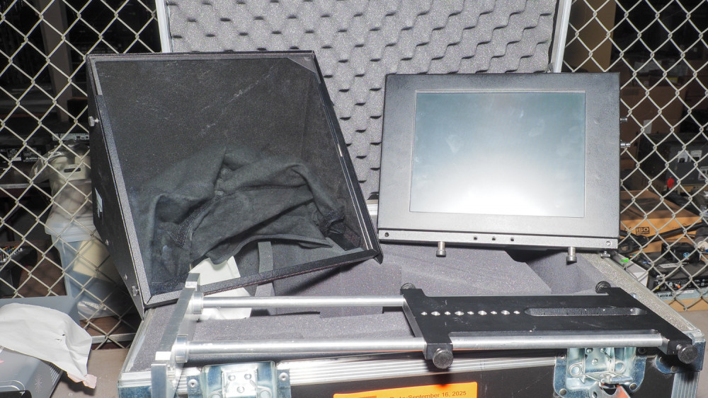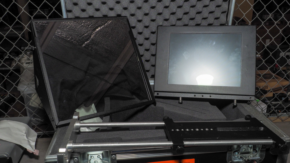 Flat-panel teleprompter with FPS120 system, carrying case, flat monitor, and angled mirror. Broadcast-ready system. Condition:Unknown *The University of Texas at Austin makes no claim of physical or mechanical condition, and functionality of items available through SWICO Auctions. All items are sold “As is, where is”. It is the sole responsibility of the bidder to physically inspect items before bidding and assume all risk. Photos and descriptions are for preview only. All sales are final and no refunds will be issued. Please refer to the SWICO “Terms of Service” in which you have agreed to.