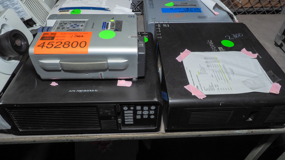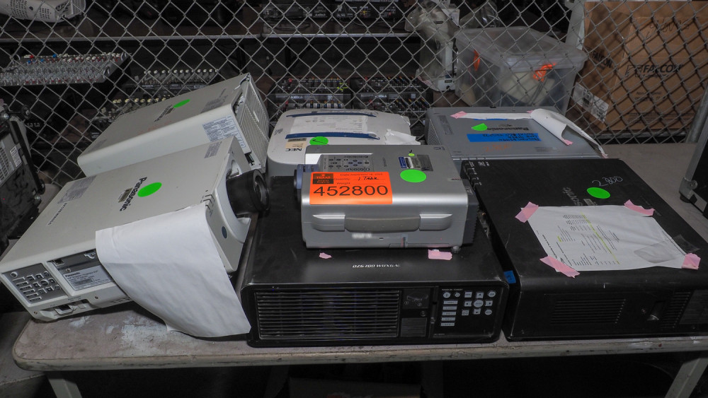 Includes Panasonic DZ670, FW300, DZ570, NEC NP1150, Sharp NoteVision XG-C40XU. Mixed-use projection gear. Condition:Unknown *The University of Texas at Austin makes no claim of physical or mechanical condition, and functionality of items available through SWICO Auctions. All items are sold “As is, where is”. It is the sole responsibility of the bidder to physically inspect items before bidding and assume all risk. Photos and descriptions are for preview only. All sales are final and no refunds will be issued. Please refer to the SWICO “Terms of Service” in which you have agreed to.