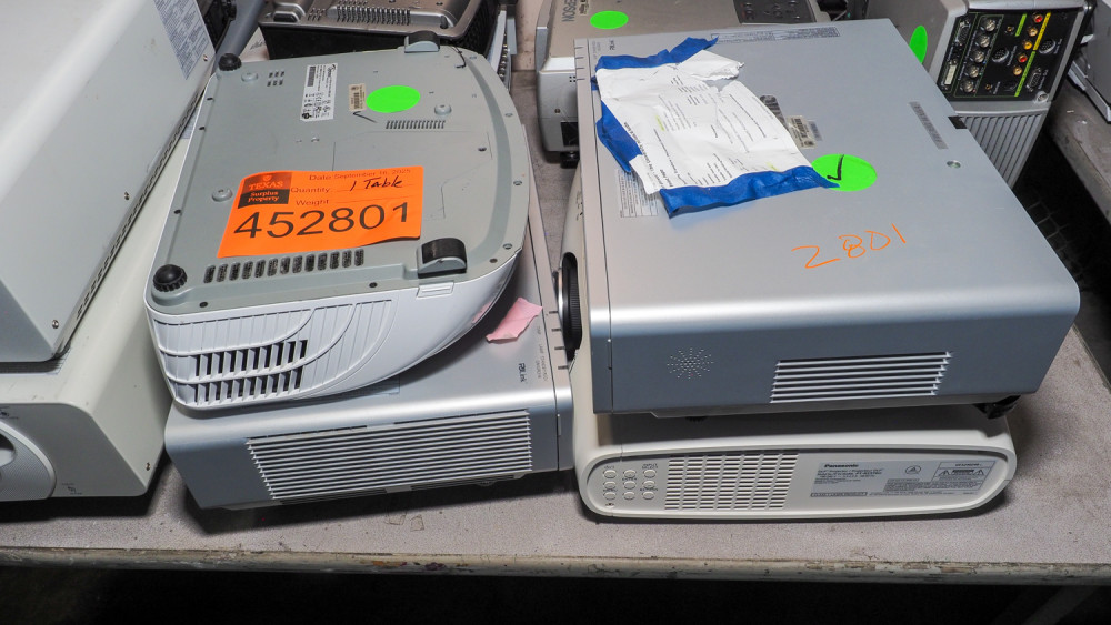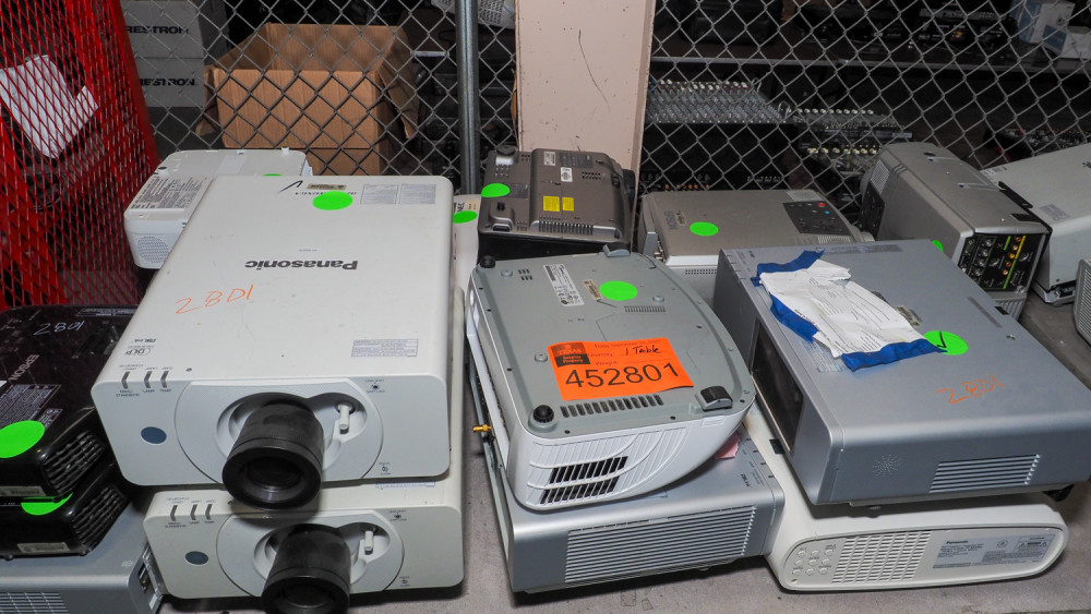 Large lot including Epson PowerLite 8200i, Epson EX7220, Panasonic FW300, RZ370, DZ570, PT-LB90T, Dell 3400MP, NEC NP410. Useful for schools, theaters, or resale. Condition:Unknown *The University of Texas at Austin makes no claim of physical or mechanical condition, and functionality of items available through SWICO Auctions. All items are sold “As is, where is”. It is the sole responsibility of the bidder to physically inspect items before bidding and assume all risk. Photos and descriptions are for preview only. All sales are final and no refunds will be issued. Please refer to the SWICO “Terms of Service” in which you have agreed to.