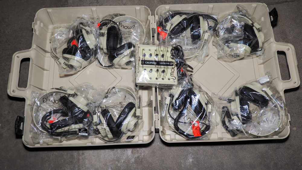 Model 1218AV-PY, pallet includes 18 sets of 8 headphones + distribution amp Condition: Used