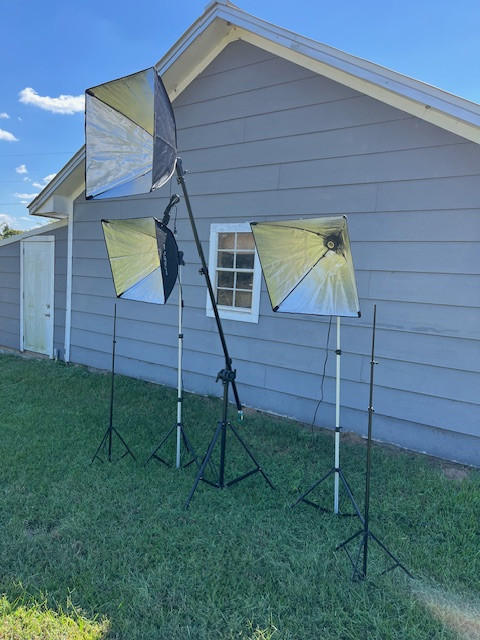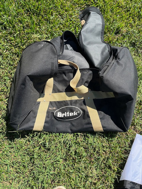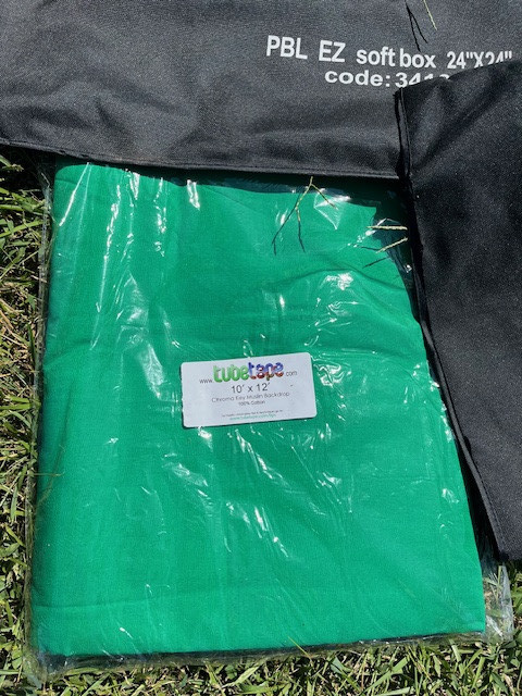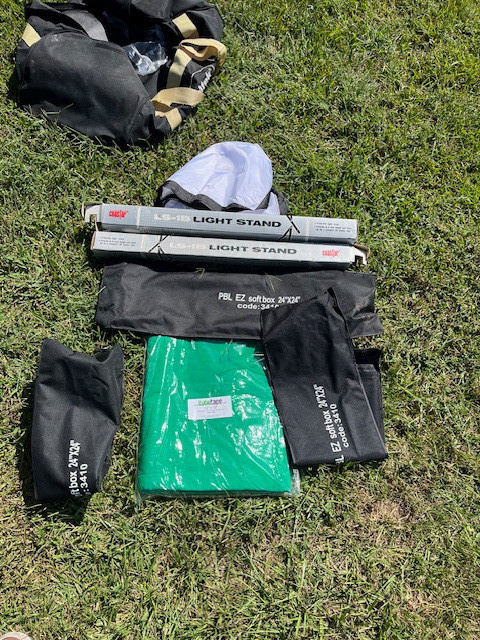 Britek professional photography lighting set, with covers and caring bag. Green background also included. Set is like new condition.