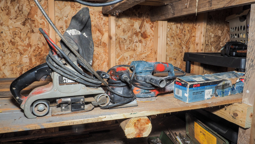 Including porter cable, belt sander, skill, palm sander, Black and Decker Orbital sander, Ryobi detail sander. All are in working Condition