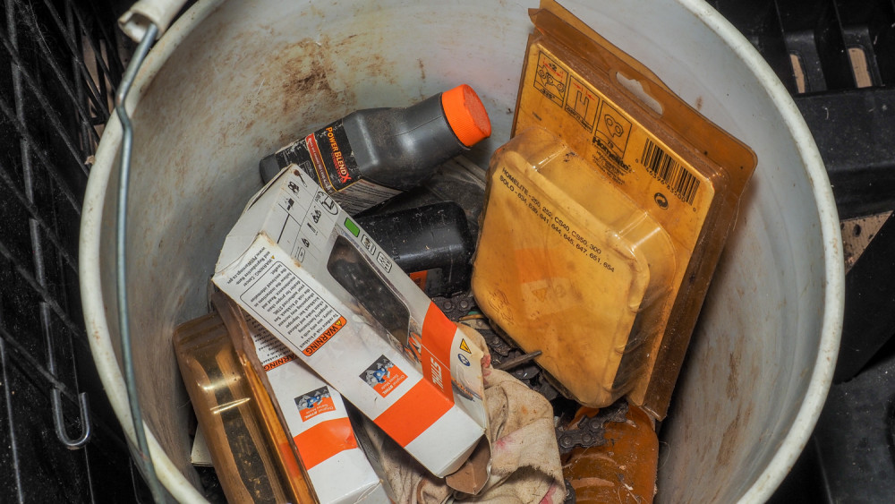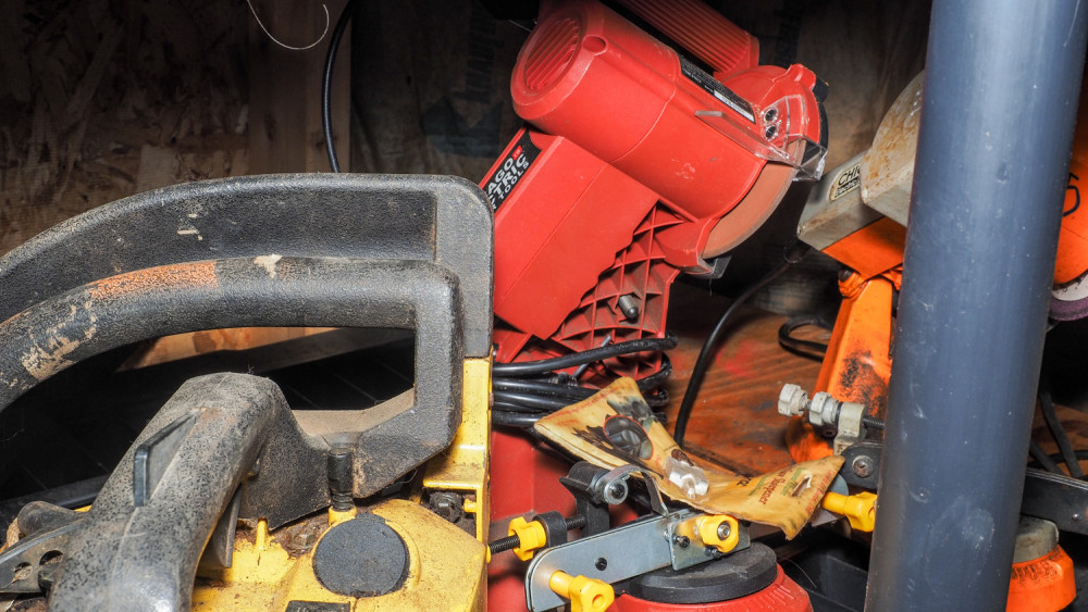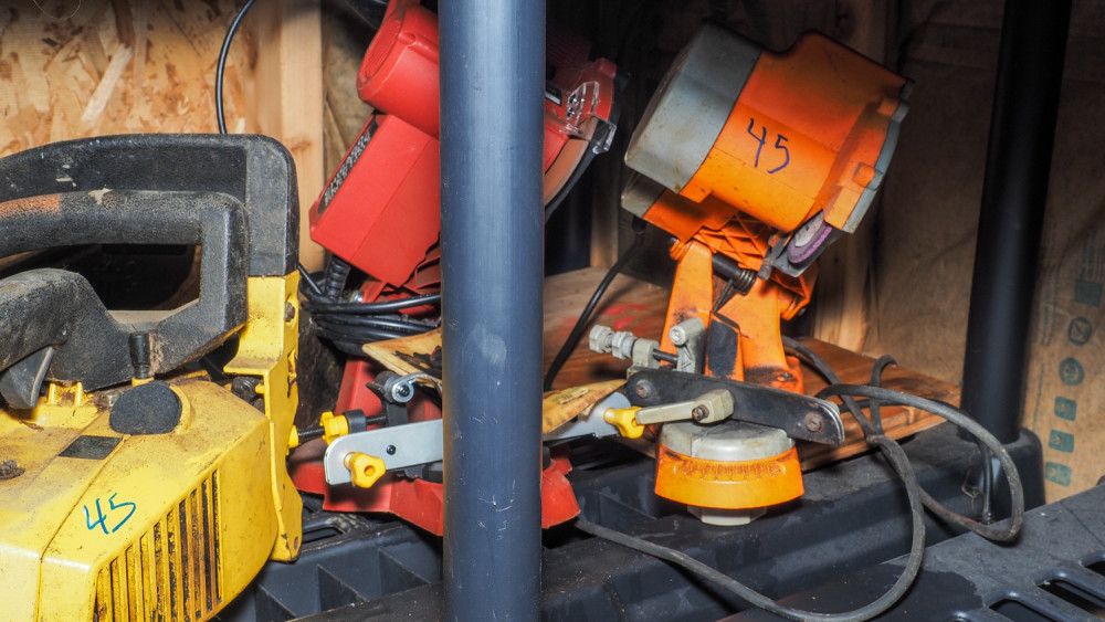 Includes a Power Mac 310 and a Homelight. Also Includes 2 Chicago Electric Chain sharpeners, Extra chains, 2 stroke oil and more