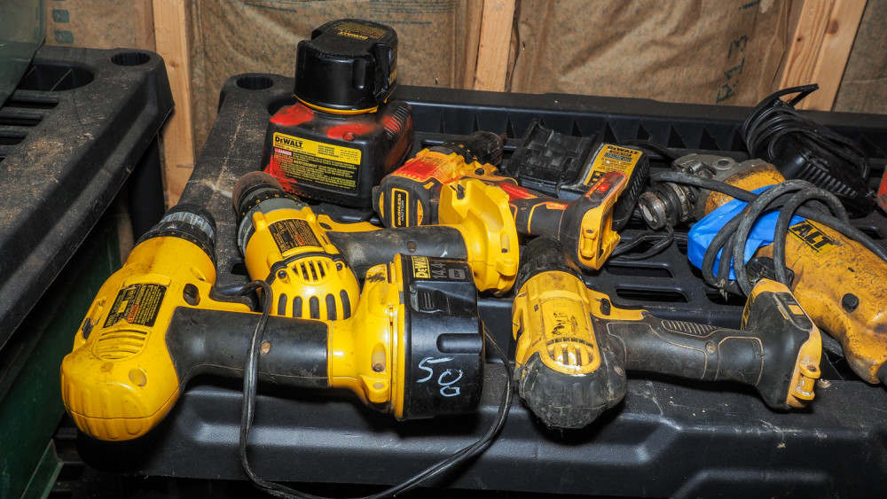 DeWalt battery operated tools. Includes DCD 777- 20 volt drill tool only. DC983. DW972. 18 volt batteries and chargers. also includes DWE402 angle grinder. Condition is 18 volt battery Charger works and drills work. Batteries are in poor condition. No 20 volt batteries.
