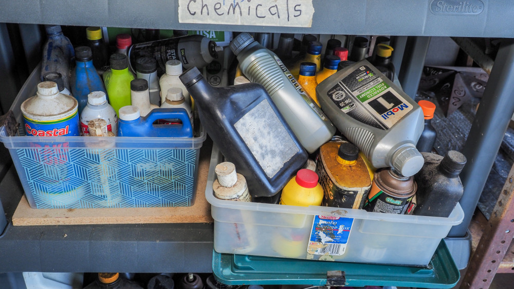 (4) Shelves of household and shop chemicals (#143) Estate Auction