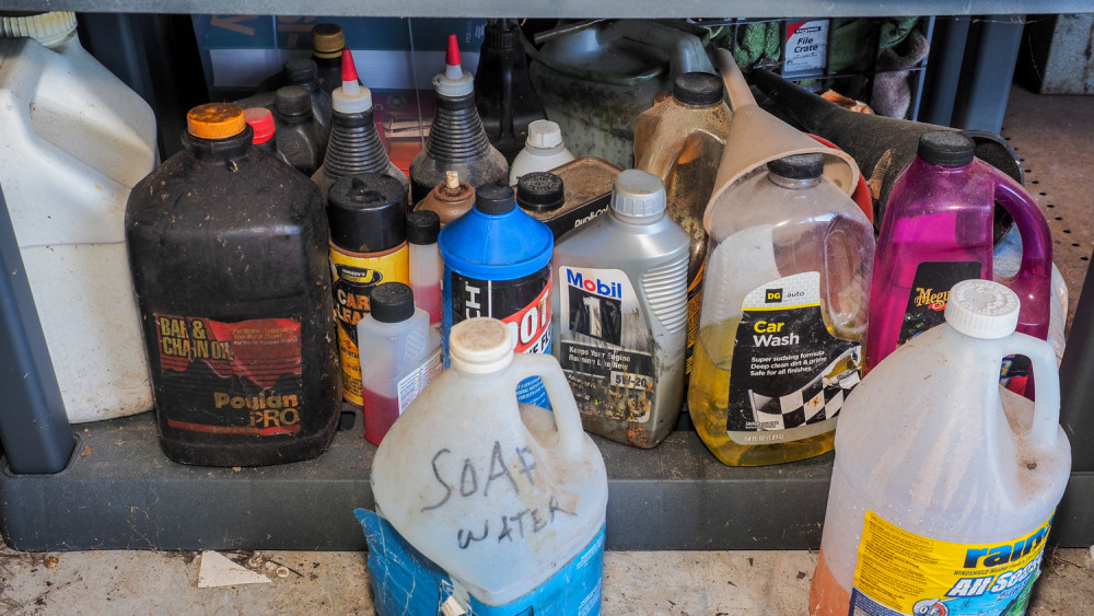 Includes colon, insecticides, , pesticides, , dog shampoos, . Weed killer, . Fertilizers, motor oil. , gas treatments, , car wash. bar chain oil. brake fluid, and more.