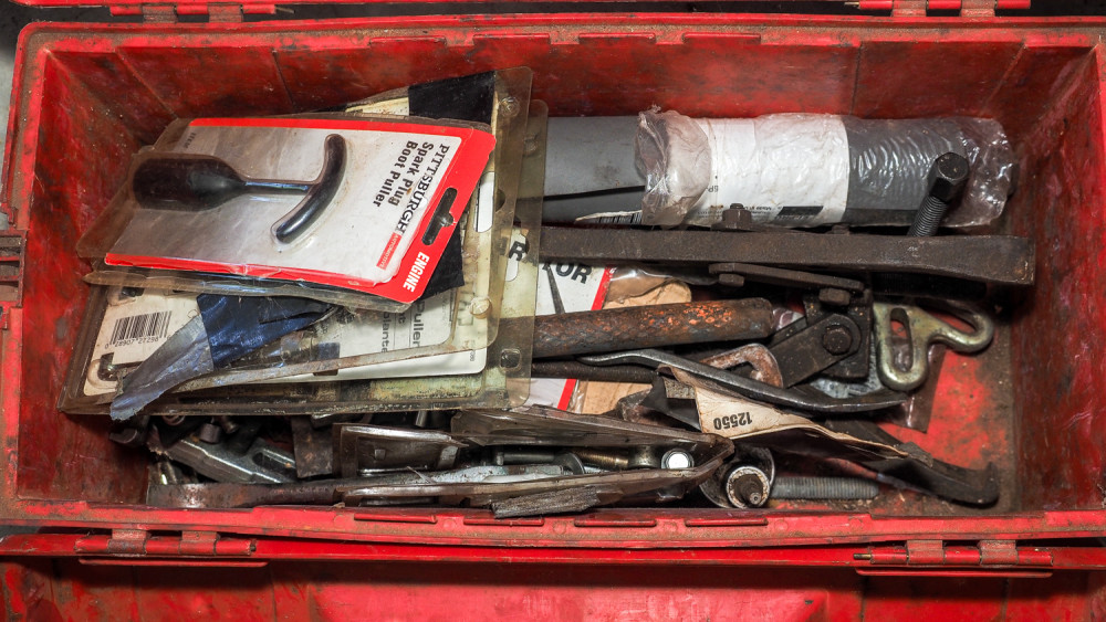 Includes car wash materials, Spark plug puller, Ball joint fork,oil filter Tools, Trailer brake kits, trailer brake light kits, Fuel pump, Grease gun, and more.