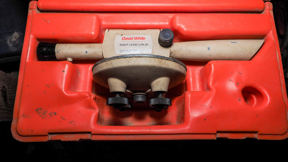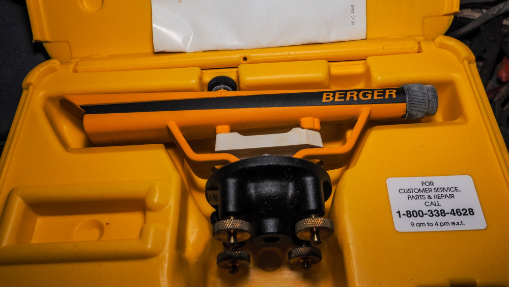 Includes Burger instruments. Model 135. Site level, Ryobi laser level Pocket Site level, Level rod, Site level LP 6-20. Plus torpedo levels and 2 ft level.