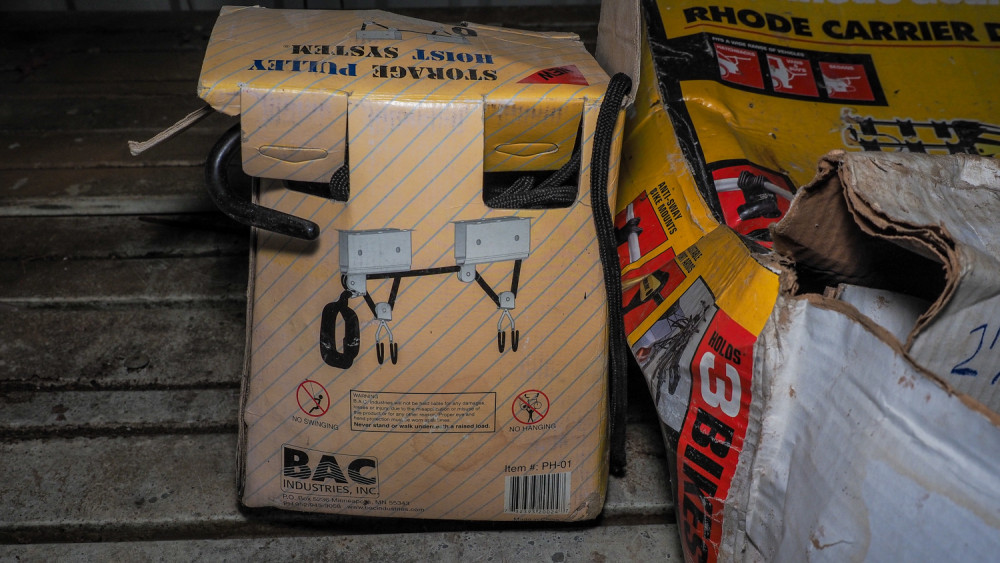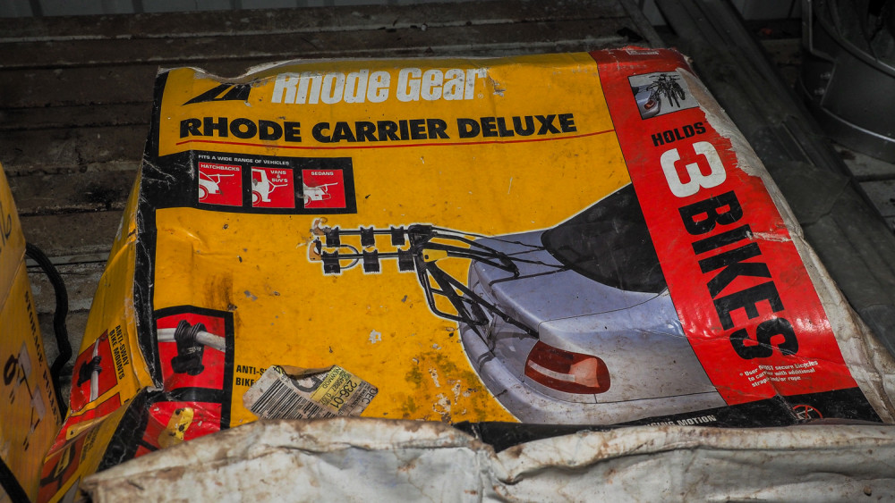 Bicycle carrier and storage hoist. Includes a road gear road carrier deluxe for hatchbacks, vans, and sedans, holds 3 bicycles. Also includes a storage pulley hoist system.