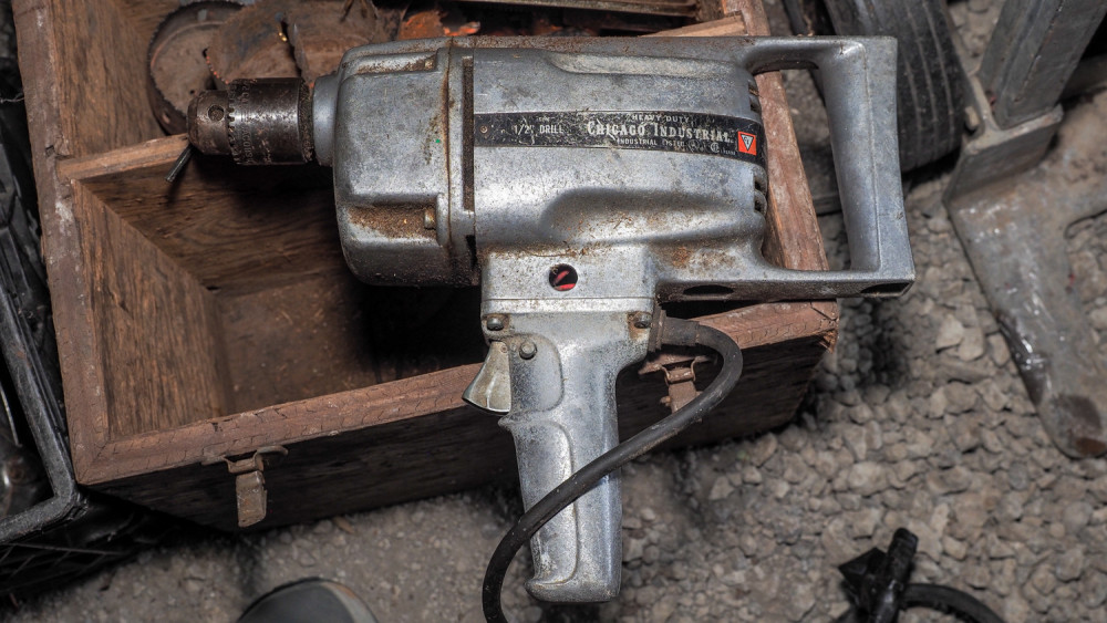 Hole saw bits And Chicago Industrial Heavy Duty drill (#318) Estate Auction