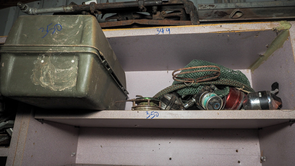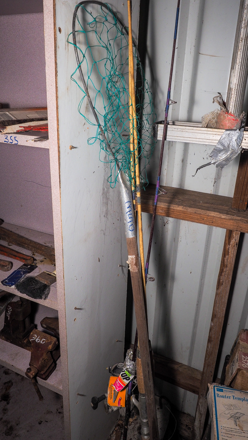 Including tackle box and tackle, fishing reels, rods, fish net, and cast net