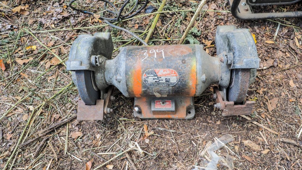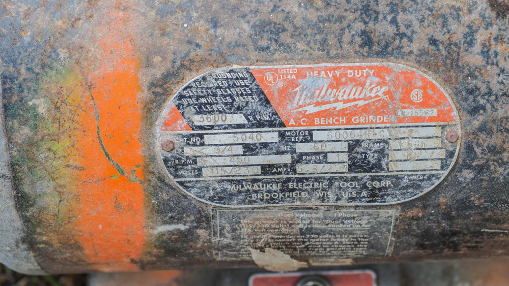 Milwaukee heavy duty 8 inch bench grinder, 3 quarter horsepower, single phase, wired for 115 volt in working condition (#399) Estate Auction