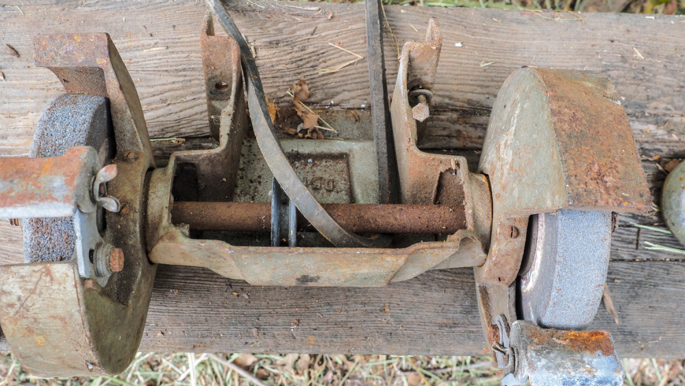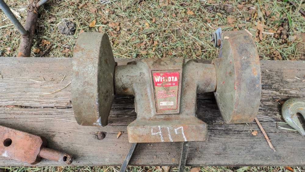 Belt driven tool grinder attachment with no motor. 7 inch discs. (#417) Estate Auction