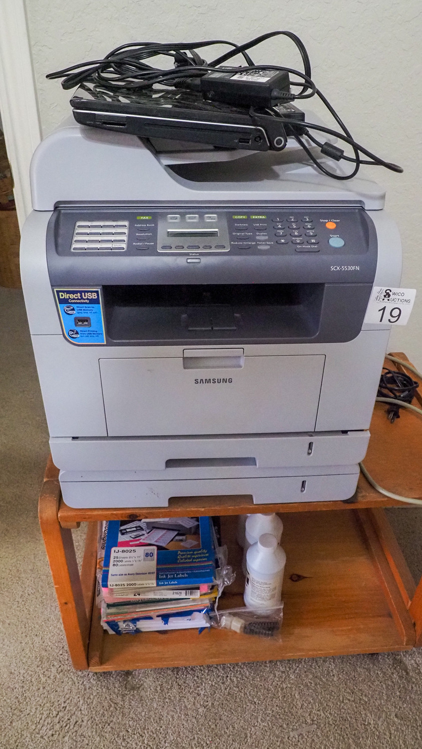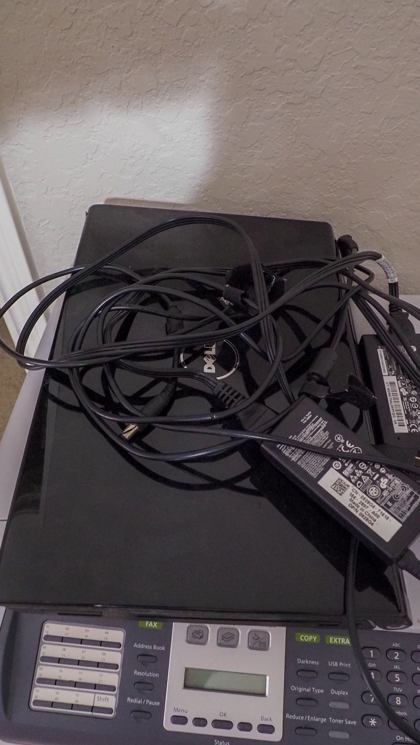 Samsung SCX-5530FN printer, Dell PP39L laptop, Brother MFC-8420, Dell monitor, AOC monitor, Dell CPU, Netgear & Asus wireless routers, keyboard & mouse, electrical test devices, and more Condition:Two computers have been wiped; printers come on