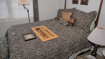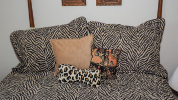 Safari-themed queen bed & decor (#28) Kelley Moving Auction