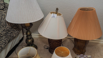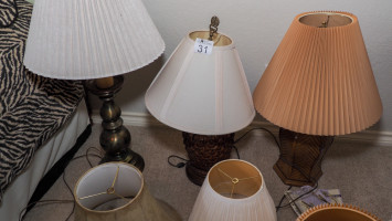 (3) Table lamps & (6) extra shades (#31) Kelley Moving Auction