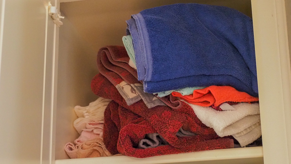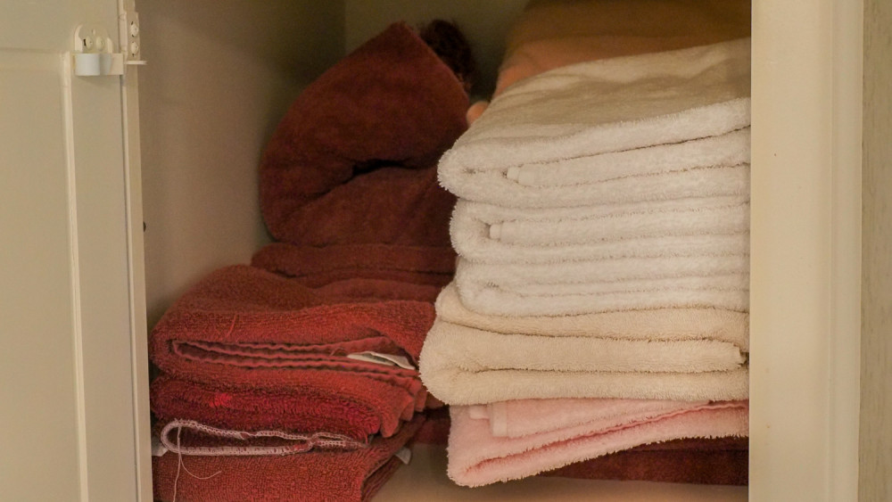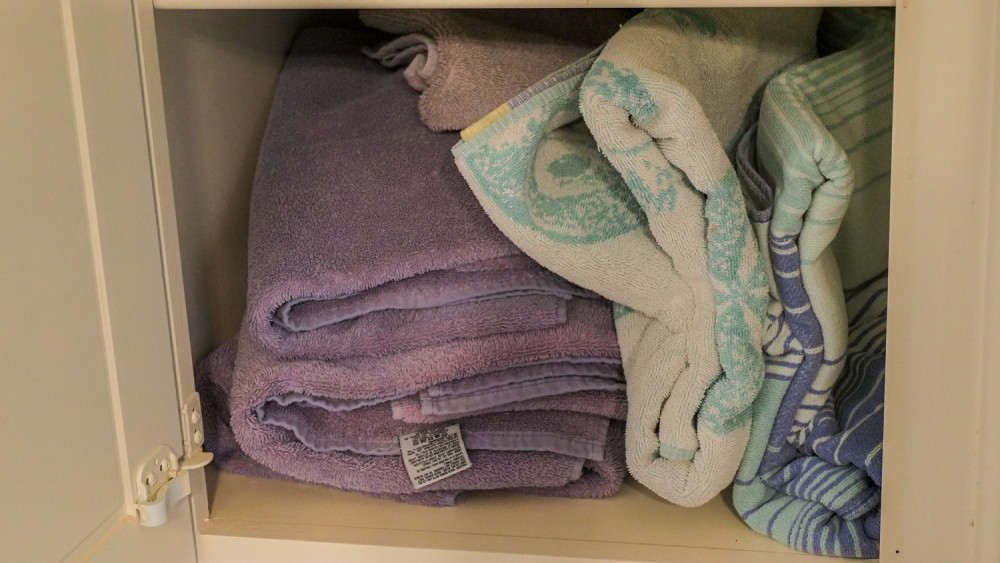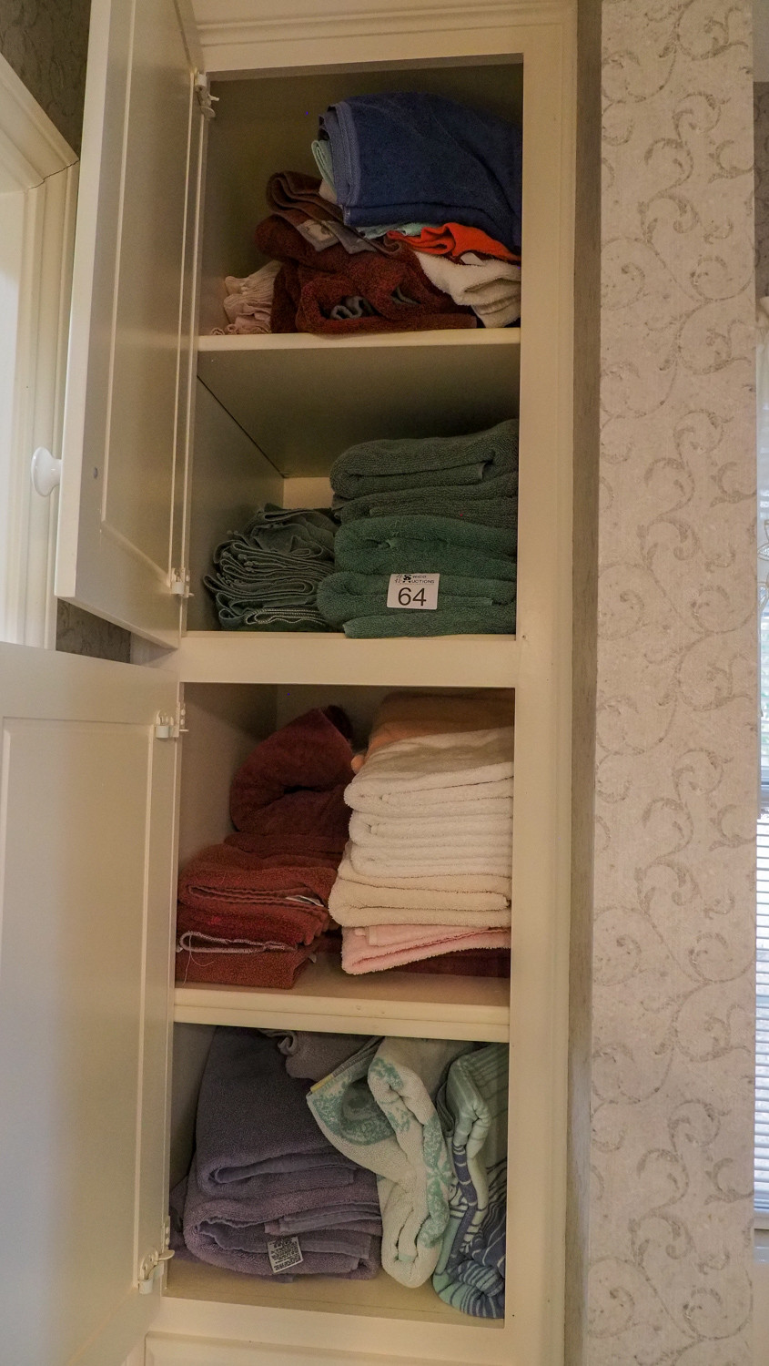 (2) Cabinets of bathroom linens (#64) Kelley Moving Auction