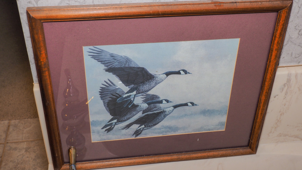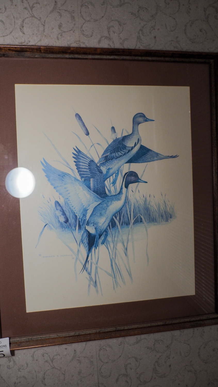 Wood Ducks by Charles E. Murphy (1980) 21 × 25 in and Geese print 21 × 18 in