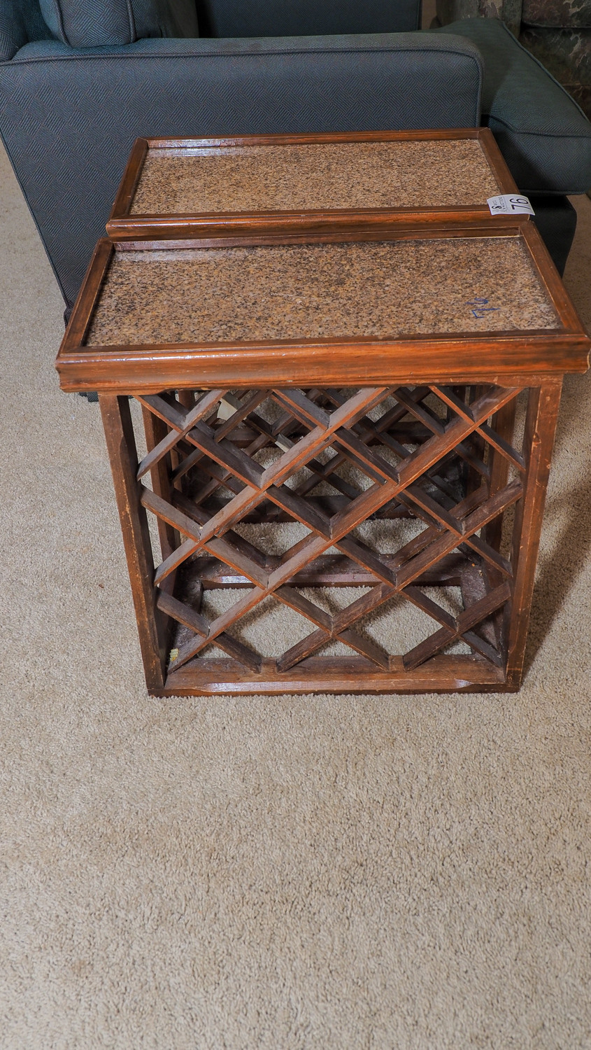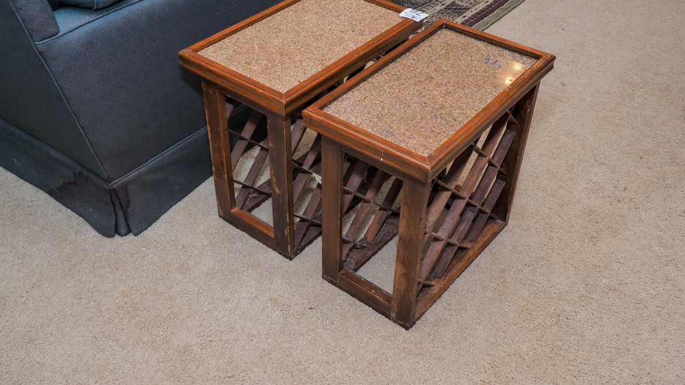 (2) Granite-top side tables (#76) Kelley Moving Auction