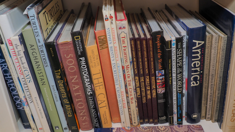 Wall Chart of World History, Britannica Atlas, Complete Story of America, Peoples of the World, Fighting Men of the Civil War, Cross-Sections Man-of-War, NatGeo Then and Now, Turtles and Tortoises, Nearly Complete History of Almost Everything, and more