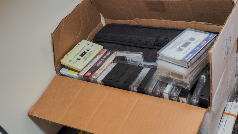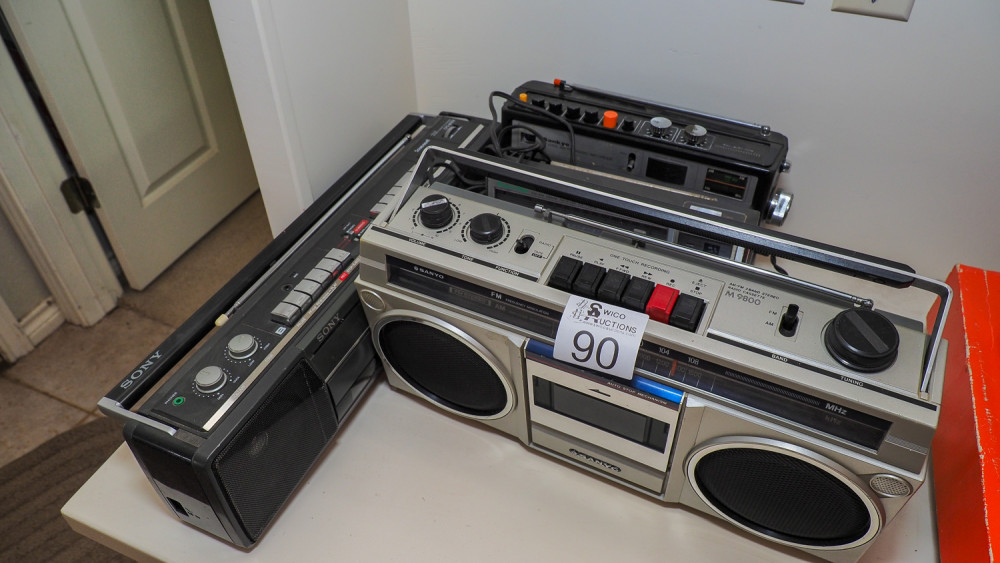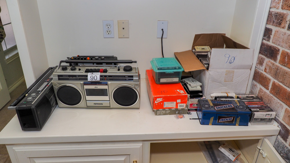 Boom boxes and cassette tapes (#90) Kelley Moving Auction