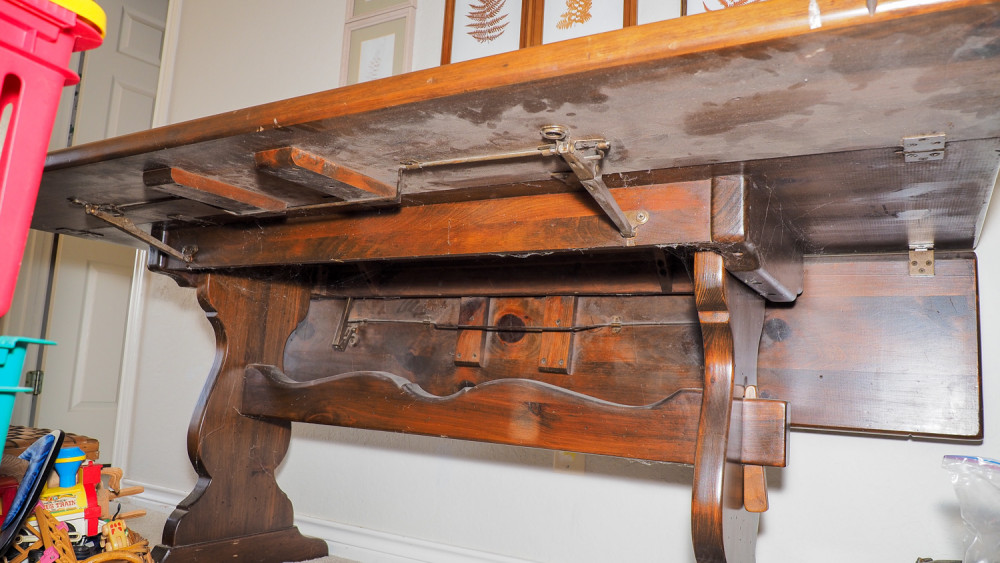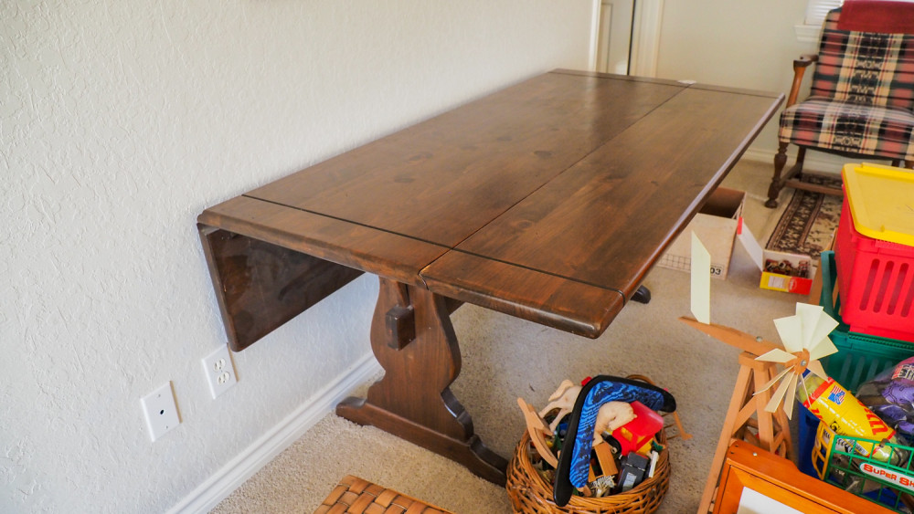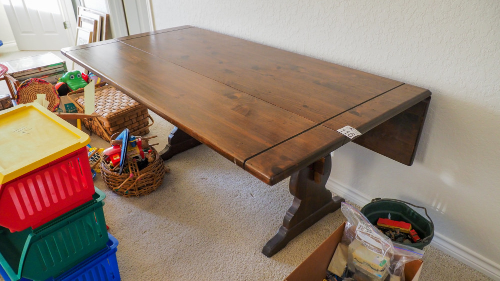 Drop-leaf wood table (#116) Kelley Moving Auction