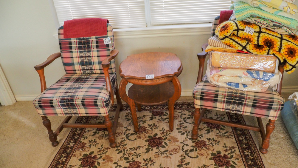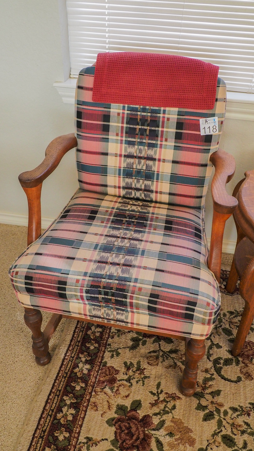 (2) Upholstered oak chairs (#118) Kelley Moving Auction