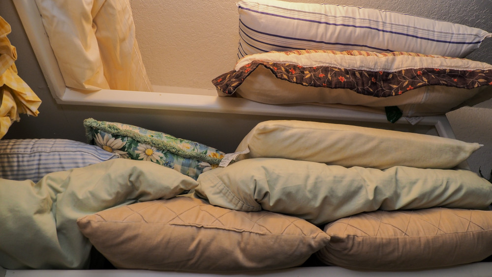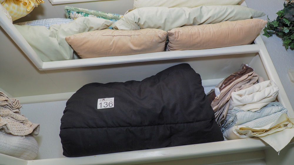 (3) Shelves of pillows and comforters (#136) Kelley Moving Auction