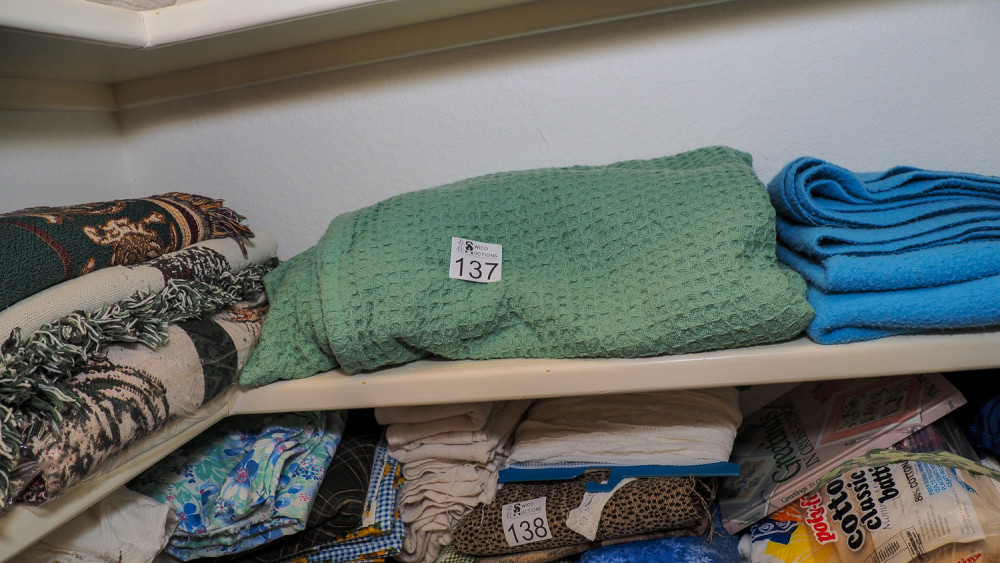 Shelf of (5) blankets (#137) Kelley Moving Auction