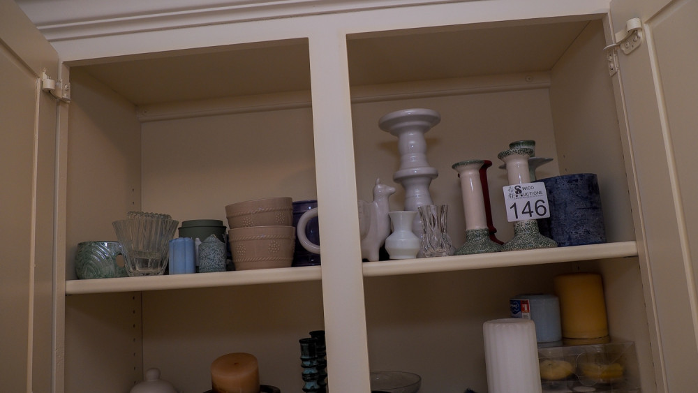 Shelf of candle holders (#146) Kelley Moving Auction