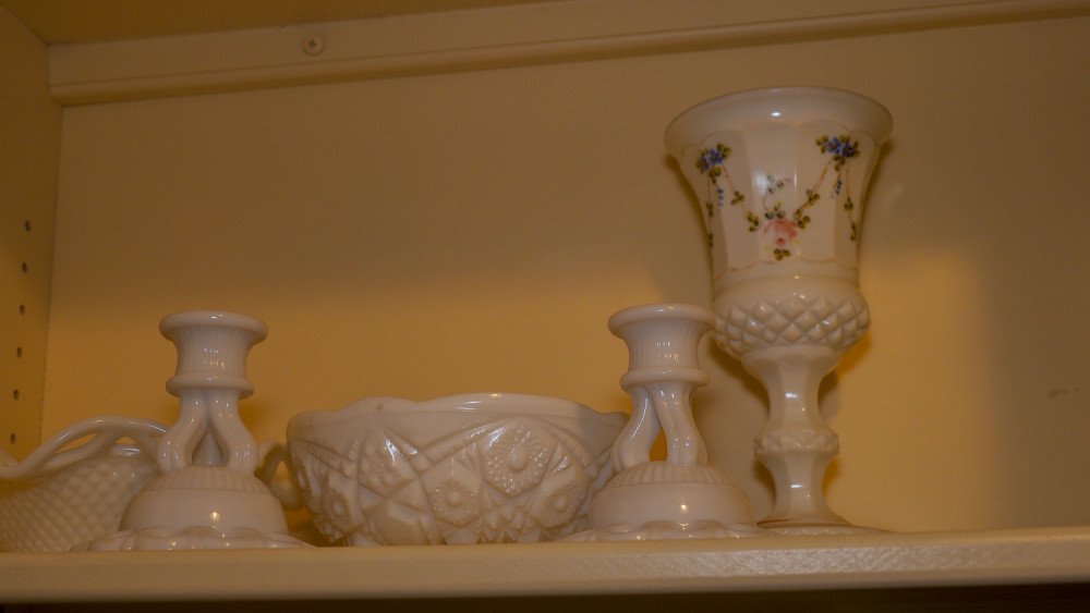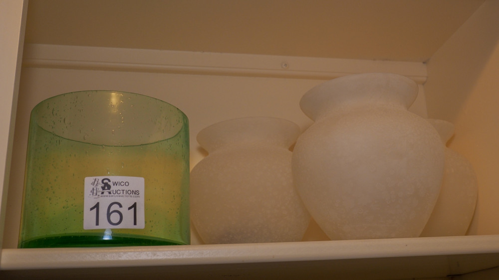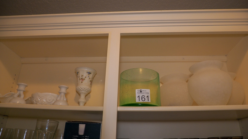 Shelf of vases and candle holders (#161) Kelley Moving Auction