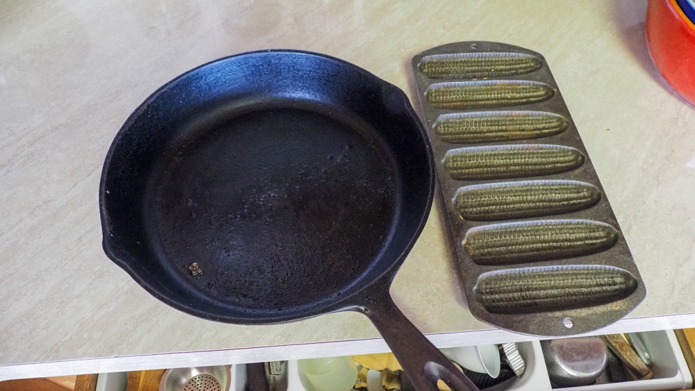 10 in USA skillet and Lodge 27 C2 cornbread mold