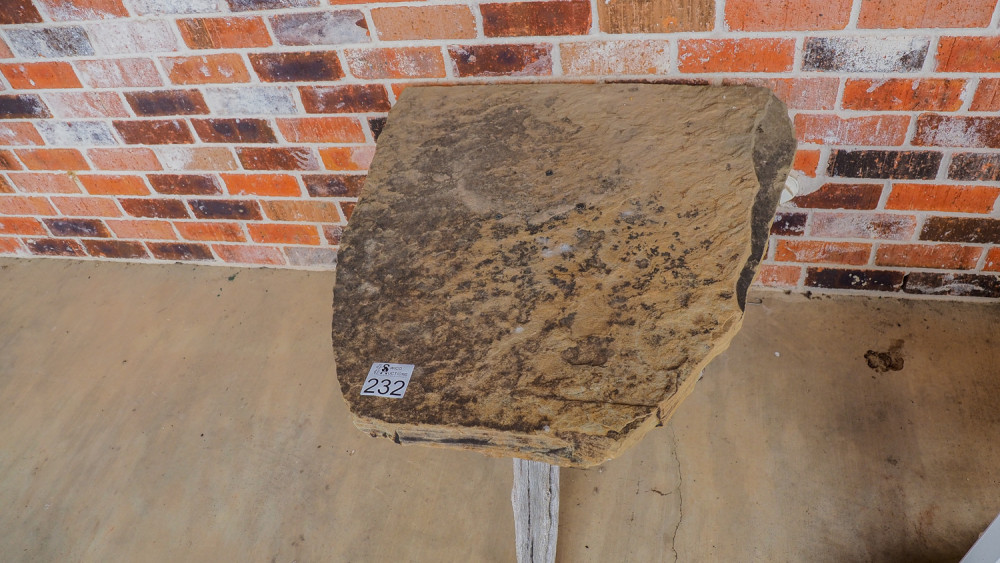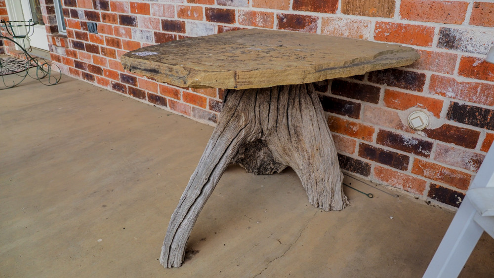 Sandstone & driftwood table (#232) Kelley Moving Auction