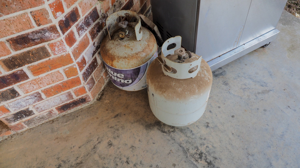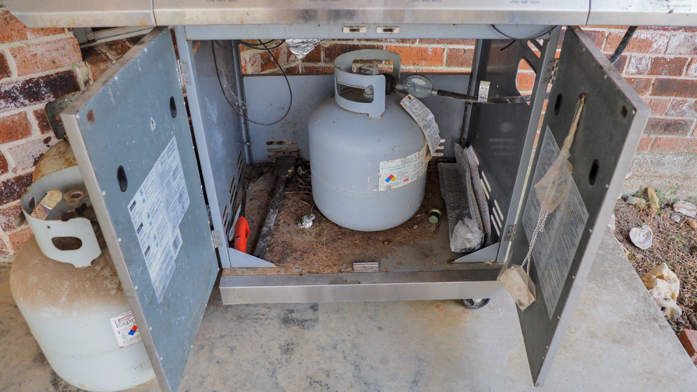With side burner and (3) propane bottles