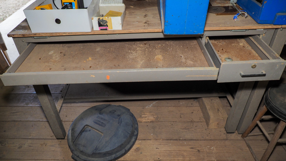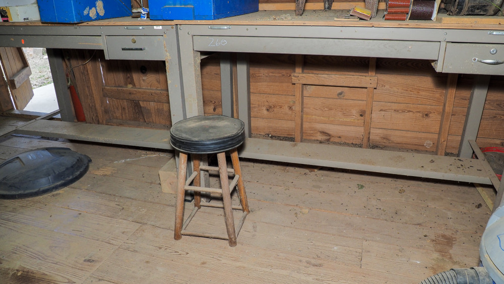 (2) Metal-frame work tables (#260) Kelley Moving Auction
