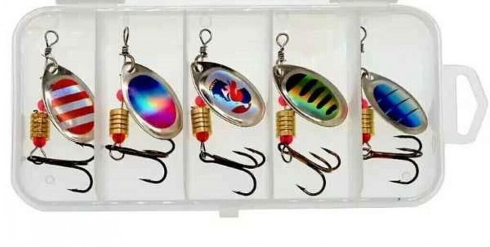 5 pcs/Set Fishing Lure Spinnerbait Bass Trout Salmon Hard Metal Spinner Baits Kit with Tackle Boxes Bin 11 ***