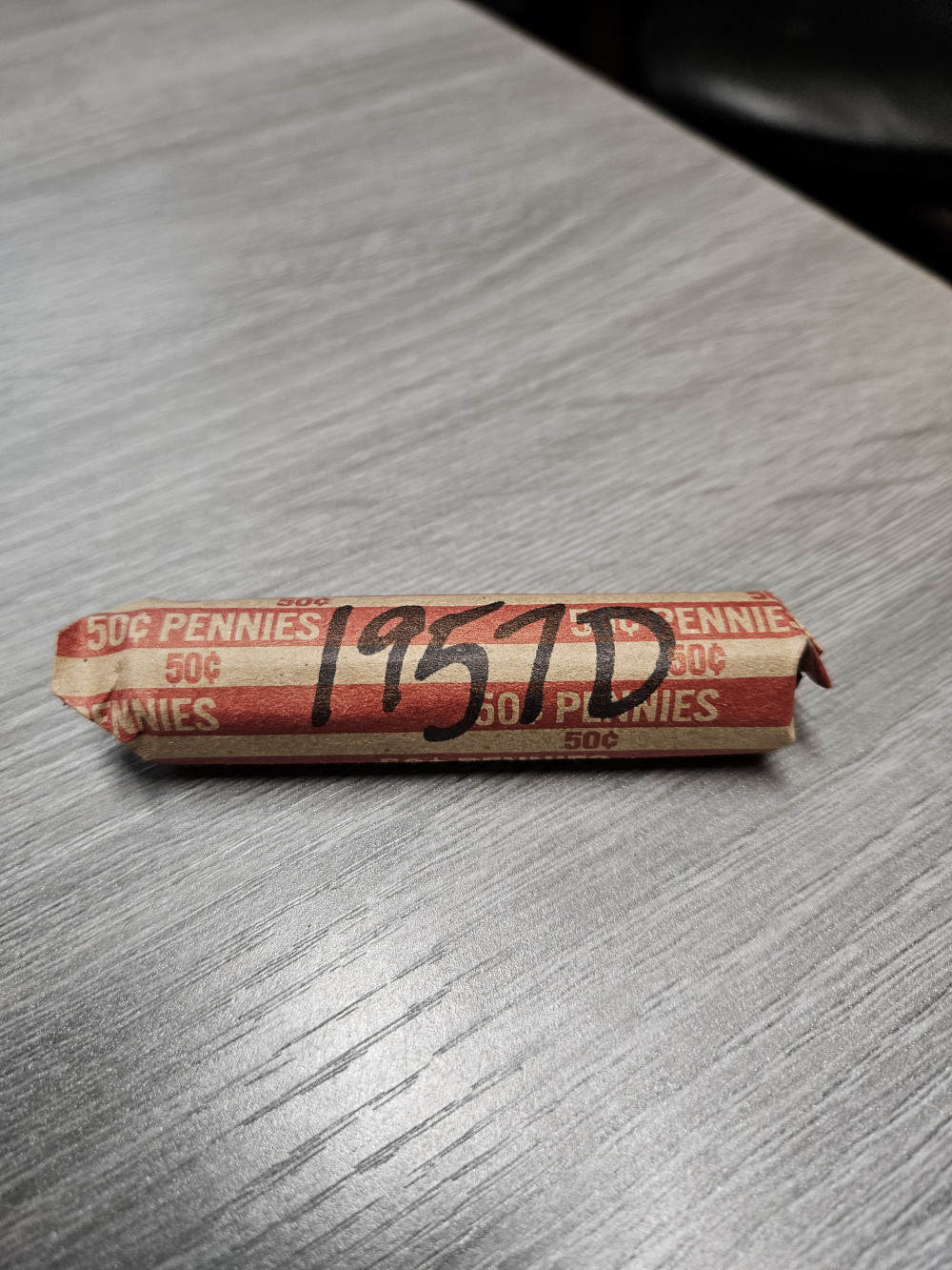 Roll of 1957 D Wheat Pennies Coins & Currency