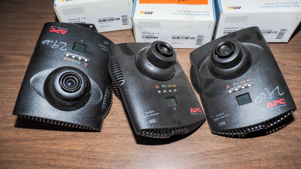 Three Axis M1011 network cameras; three APC NetBotz Room Monitor 355 *The University of Texas at Austin makes no claim of physical or mechanical condition, and functionality of items available through SWICO Auctions. All items are sold “As is, where is”. It is the sole responsibility of the bidder to physically inspect items before bidding and assume all risk. Photos and descriptions are for preview only. All sales are final and no refunds will be issued. Please refer to the SWICO “Terms of Service” in which you have agreed to.