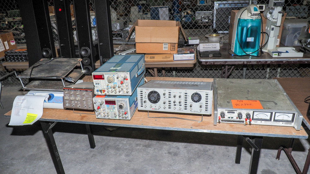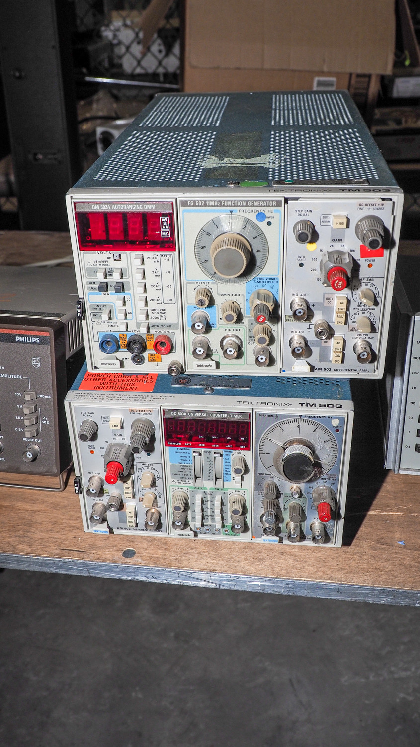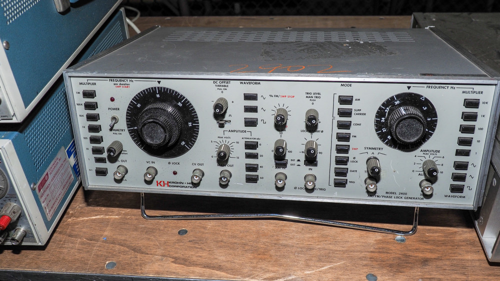 Weston Instruments 1310 frequency response analyzer; Krohn-Hite 2400 generator; Tektronix function generator; Philips PM5712 pulse generator; VWR rocking platform Condition:Unknown *The University of Texas at Austin makes no claim of physical or mechanical condition, and functionality of items available through SWICO Auctions. All items are sold “As is, where is”. It is the sole responsibility of the bidder to physically inspect items before bidding and assume all risk. Photos and descriptions are for preview only. All sales are final and no refunds will be issued. Please refer to the SWICO “Terms of Service” in which you have agreed to.