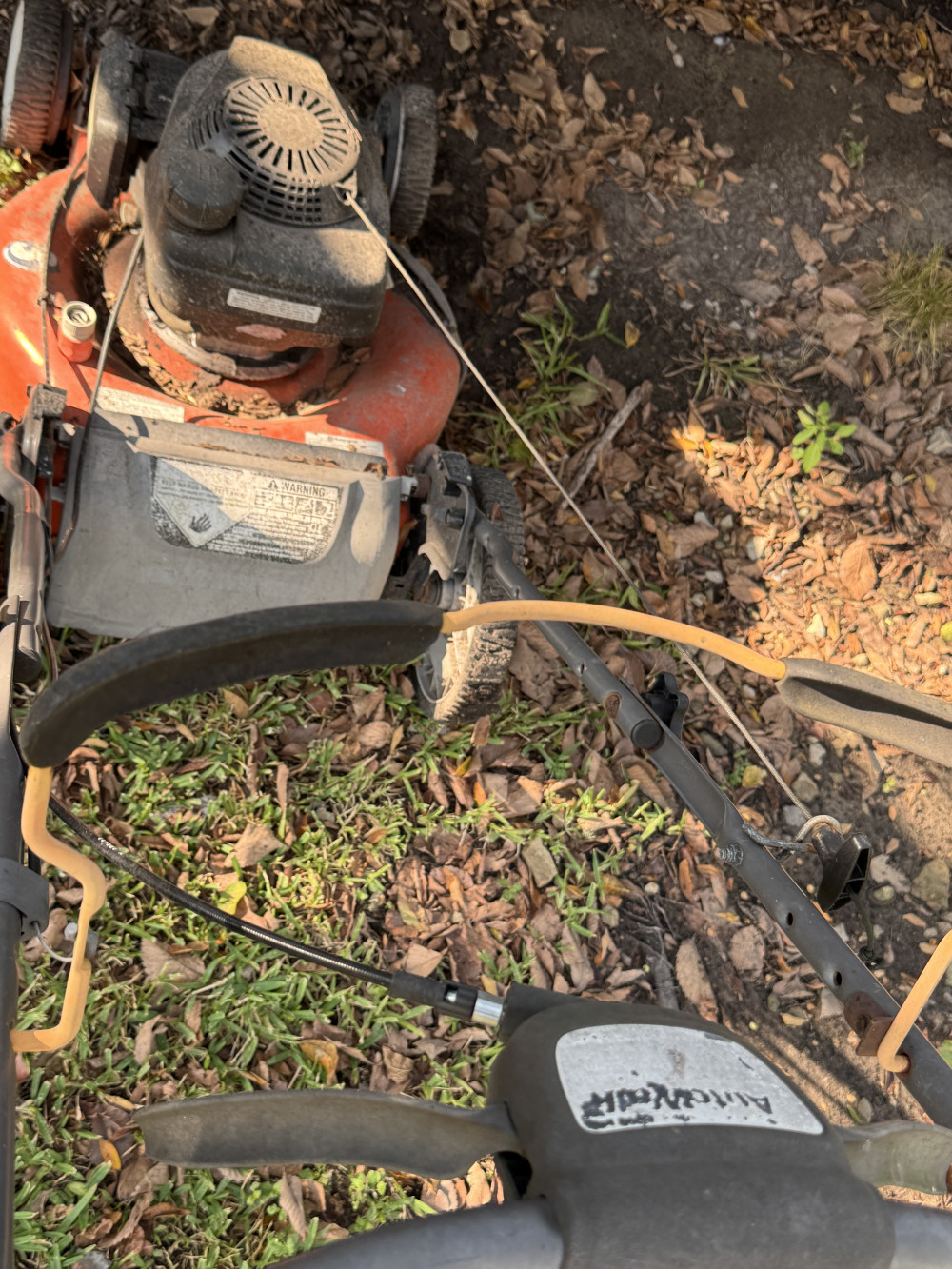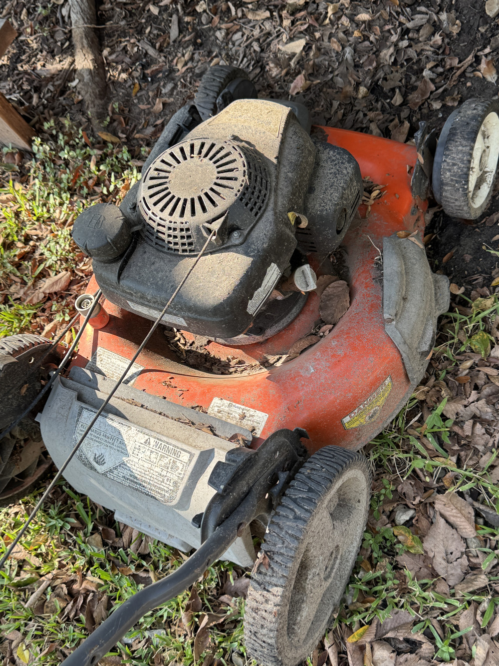 Self-propelled push mower was running fine when parked probably needs carburettor cleaned and some fuel