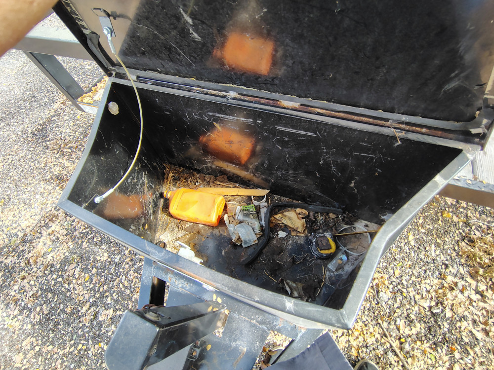 Exterior: 18' Long, 82.5 inched W. Scratches, some rust, 1 flat tire, 1 ramp.