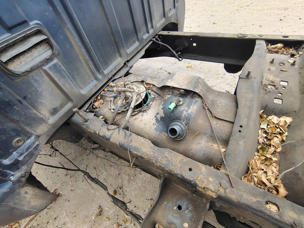 Exterior: multiple body parts missing. Dented and scratched throughout. Broken grill.