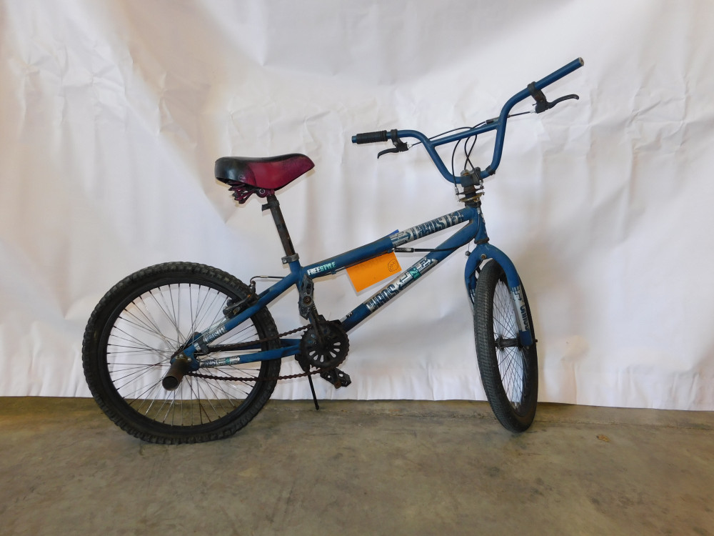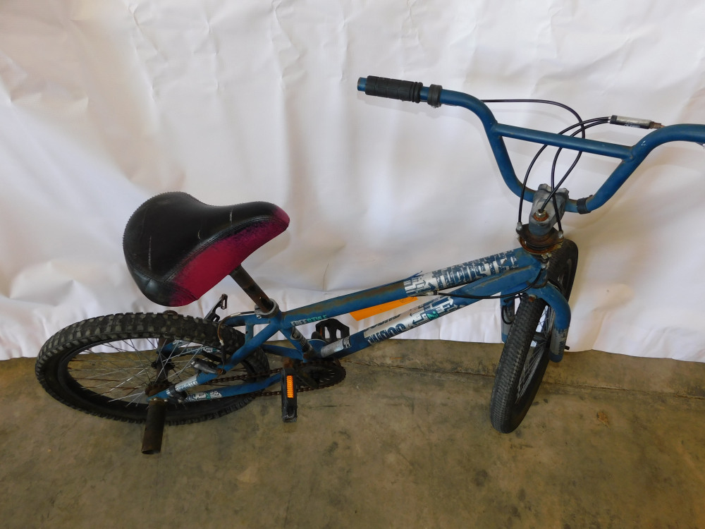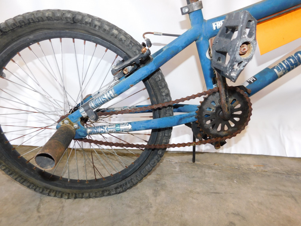 Kent Thruster Chaos 20-inch BMX Bike - Single speed, heavy wear, flat tires, and rust on chain.