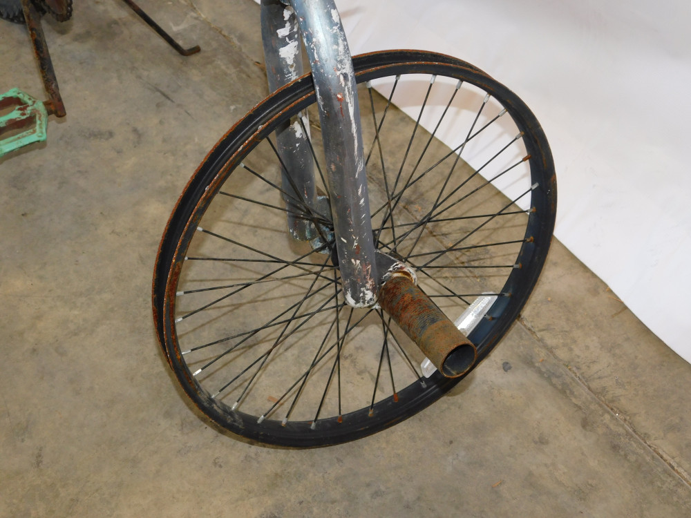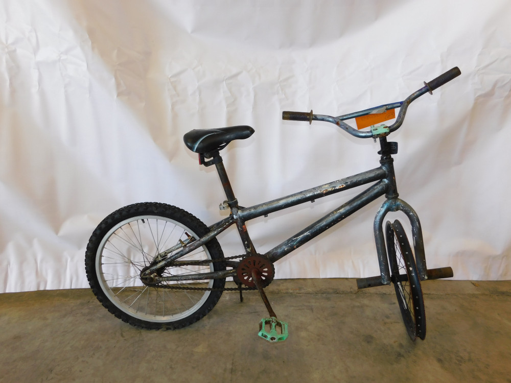 BMX Style Bike - 20 inch - missing front tire, paint loss and rust present, single speed.