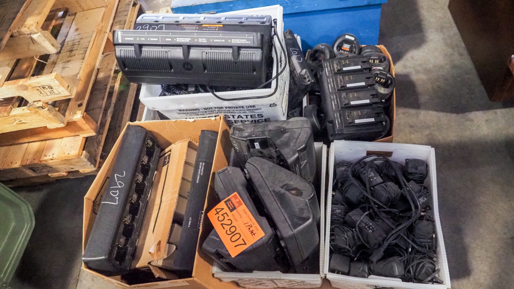 Pallet of Motorola Radio charging bases and Power cords (#452907) University Of Texas At Austin