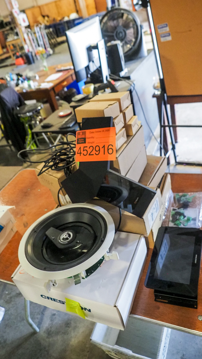 includes Polycom conferencing Speaker Polycom phones Crush drawn Ceiling speaker Crestron touch control panel DM room controller, and more *The University of Texas at Austin makes no claim of physical or mechanical condition, and functionality of items available through SWICO Auctions. All items are sold “As is, where is”. It is the sole responsibility of the bidder to physically inspect items before bidding and assume all risk. Photos and descriptions are for preview only. All sales are final and no refunds will be issued. Please refer to the SWICO “Terms of Service” in which you have agreed to.